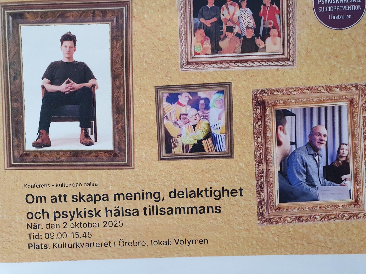 Region Örebro arrangerade idag en heldag om sambandet mellan kultur och (psykisk) hälsa. I centrum stod hur ”kulturella uttryck kan bidra till meningsfullhet och en känsla av sammanhang”. De många deltagarna kom i huvudsak från vård- och omsorgssektorn, LSS-verksamheter och daglig verksamhet, men också ledare och strateger inom kommuner och regioner fanns på plats.
