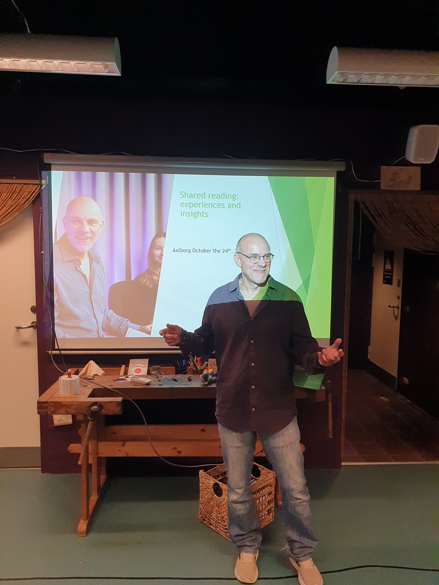 I Danmark är det mycket shared reading-relaterat på gång: utbildningar, fortbildningar, konferenser och nätverksträffar både på nationell och regional nivå. Igår höll jag en presentation och en workshop – shared reading inför publik – på en konferens i Aalborg för läsledare i Nordjylland. Clare Ellis från The Reader deltog via länk.